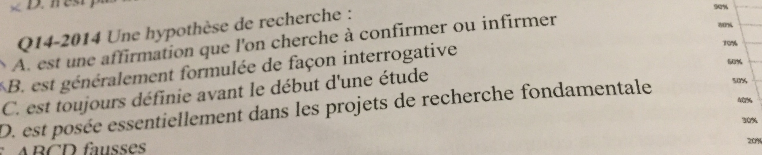 Une hypothèse de recherche fait suite à une question de recherche. Dans le diapo, par exemple, la question de recherche est "Le tabac augmente-t-il le risque de cancer du poumon ?" et l'hypothèse de recherche est "Le tabac augmente le risque de cancer du poumon." Ce n'est donc pas une phrase interrogative mais ici affirmative. Tu peux toutefois avoir des phrases négatives telles que "Le tabac n'a aucune incidence sur la santé" et c'est à toi d'affirmer ou d'infirmer ton hypothèse grâce aux résultats que tu auras recueillis en menant ton étude. Mais je préfèrerai vraiment voir le QCM stp