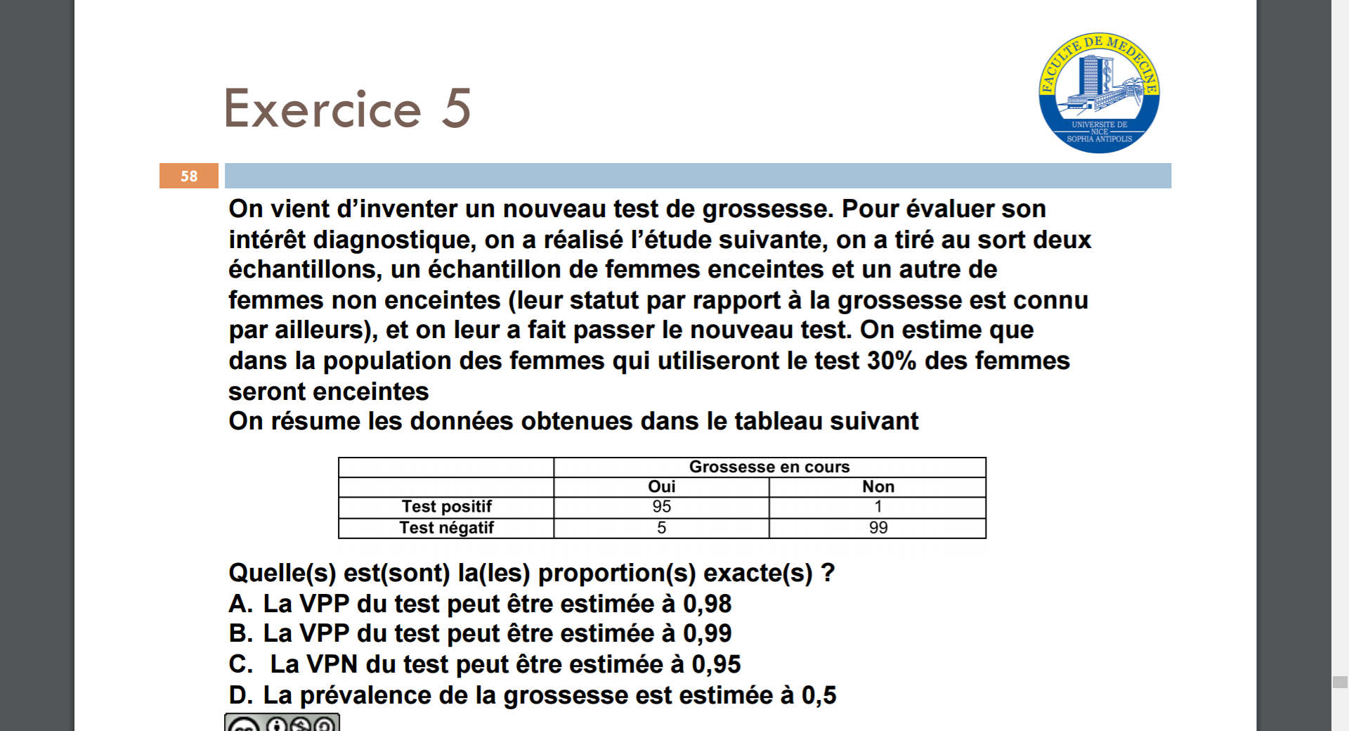 Mais si on calcule la prévalence avec le tableau, c'est de 50%
