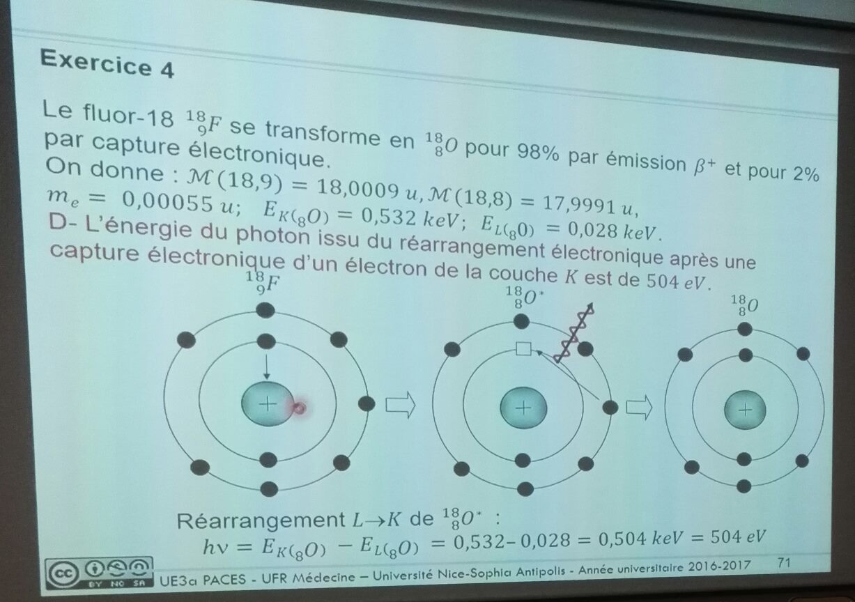 Non c'est bien ça, tu as du te tromper dans le calcul car 18,0009 - 17,9991 - (2 x 0.00055) = 0,0007u -> 0,7 MeV :wink2: