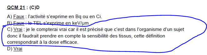 Un item est : - La dose déposée par le rayonnement dans l'organisme est compté Vrai