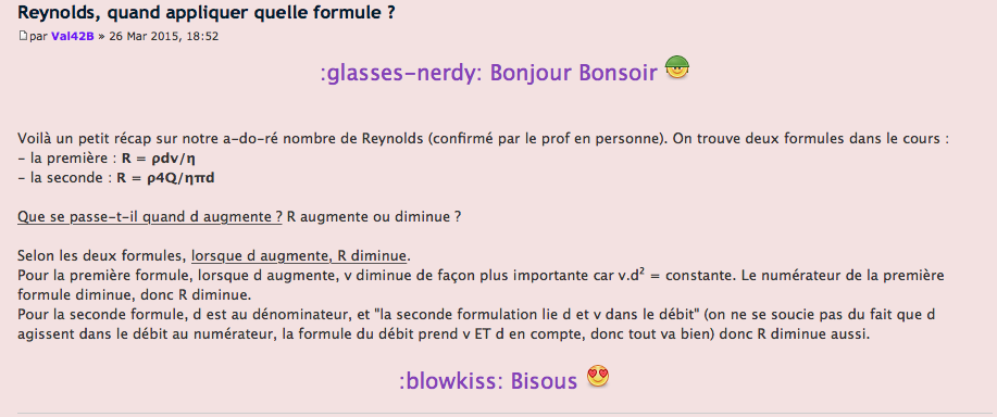 J'ai une petit question sur la ronéo 2p.12 on dit que si le diamètre augmente le risque de turbulence augmente or il me semble que l'année dernière c'était l'inverse et qu'il fallait raisonner sur la formule Re=4pQ/ ndpi... c'est une errata ?