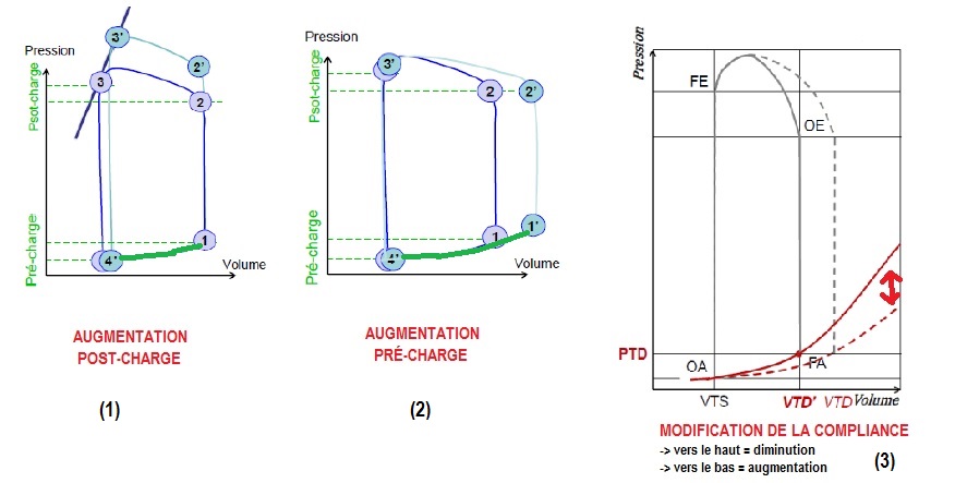 Néanmoins je t'ai récapitulé sur cette image des schémas qui montrent bien que l'augmentation de la post-charge, ou de la pré-charge se font indépendamment d'une modification de la compliance.