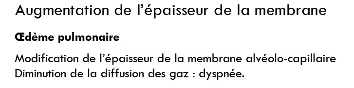 Une des conséquences de l'oedème pulmonaire est l'augmentation de l'épaisseur de la membrane alvéolo-capillaire. Cela est causé justement par une accumulation de liquide interstitiel entre les capillaires et les alvéoles. Il ne faut pas simplement se limiter à la définition stricte de l'oedème :p le passage de liquide vers les alvéoles a forcément une répercussion sur l'état de la membrane !