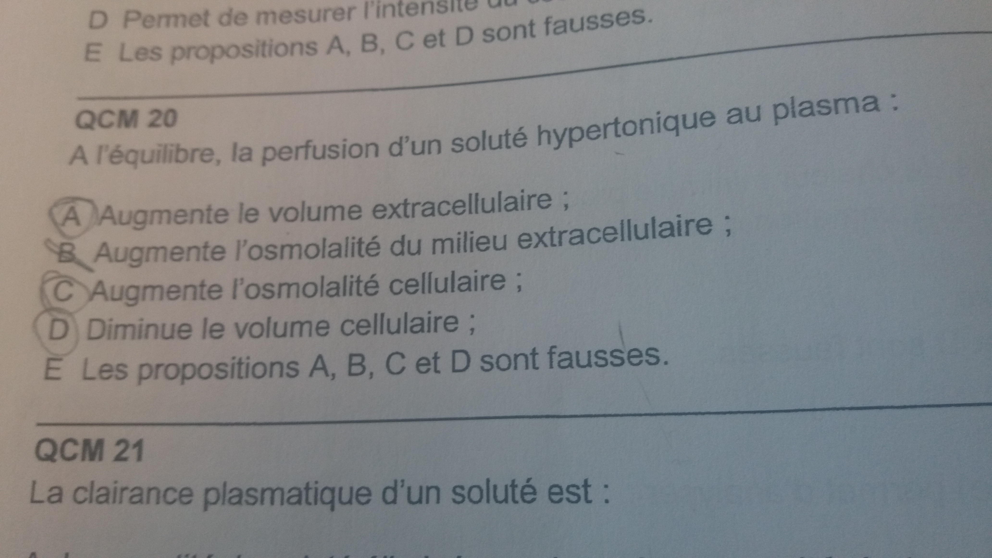 hello ! je ne comprends tjs pourquoi l'item B est compté juste car pour moi y a un flux d'eau allant du Milieu IC à celui EC donc il y a une sorte de dilution et ainsi pour moi baisse de l'osmolalité. y avait un post semblable mais j'ai pas vraiment compris, pour moi ça paraît pas trop logique viewtopic.php?f=891&t=105542&p=487526&hilit=hypertonique#p487526
