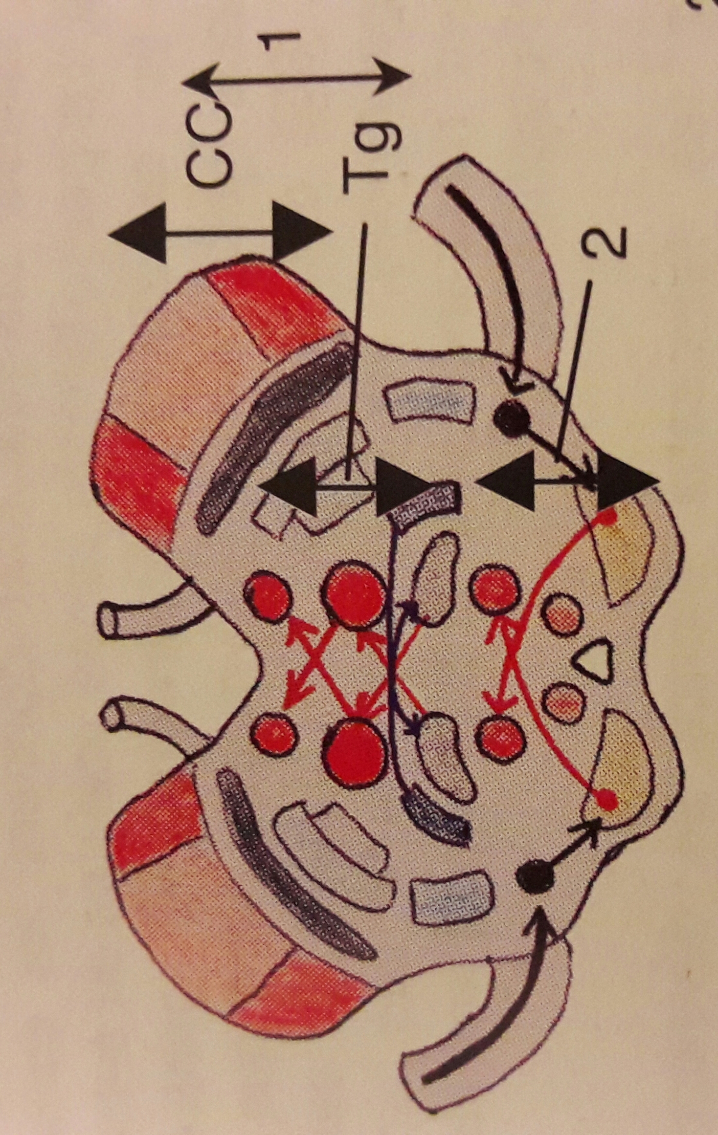 Sur cette coupe transversale du Mésencéphale, tu peux voir le tegmentum (Tg) et le pied (CC, pourquoi CC ? parce qu'il s'appelle aussi "crus cerebi " -osef-)