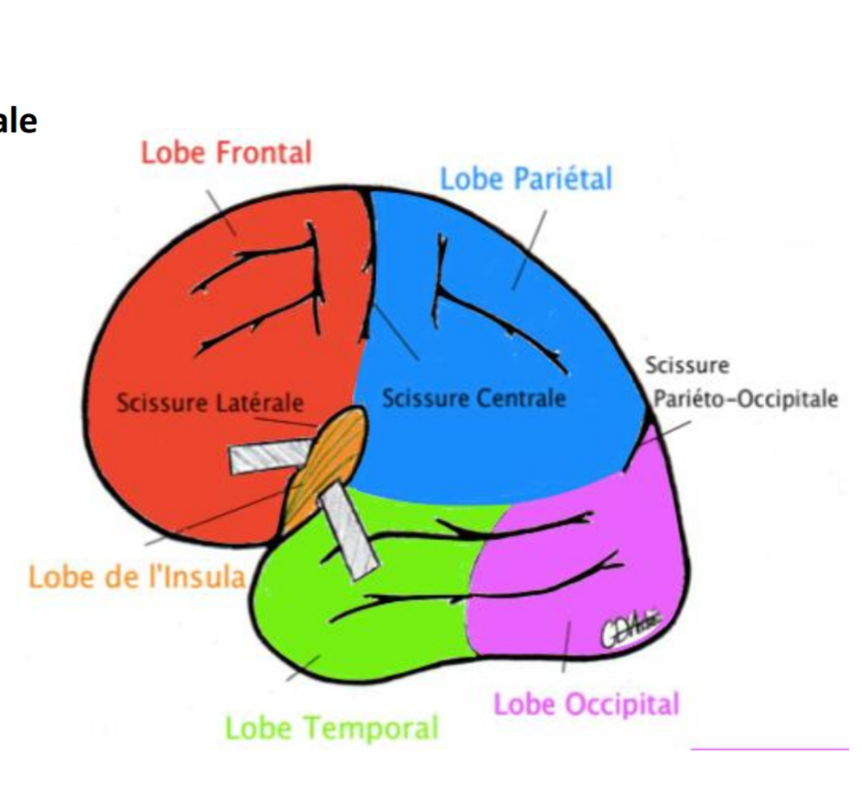 Le lobe de l"insula se situe dans la fissure de Sylvius (latérale ), il faut en écarter les lèvres pour le voir.