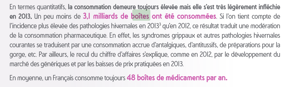 Yo ! Dans le cours sur les aspects sociétaux du médicaments à la diapo 101, il est écrit 18 boites de medicaments/hab en 2013 en France, d'après les autres cours et internet, ça serait plutôt 48 boites, pourrais-tu lui demander stp?