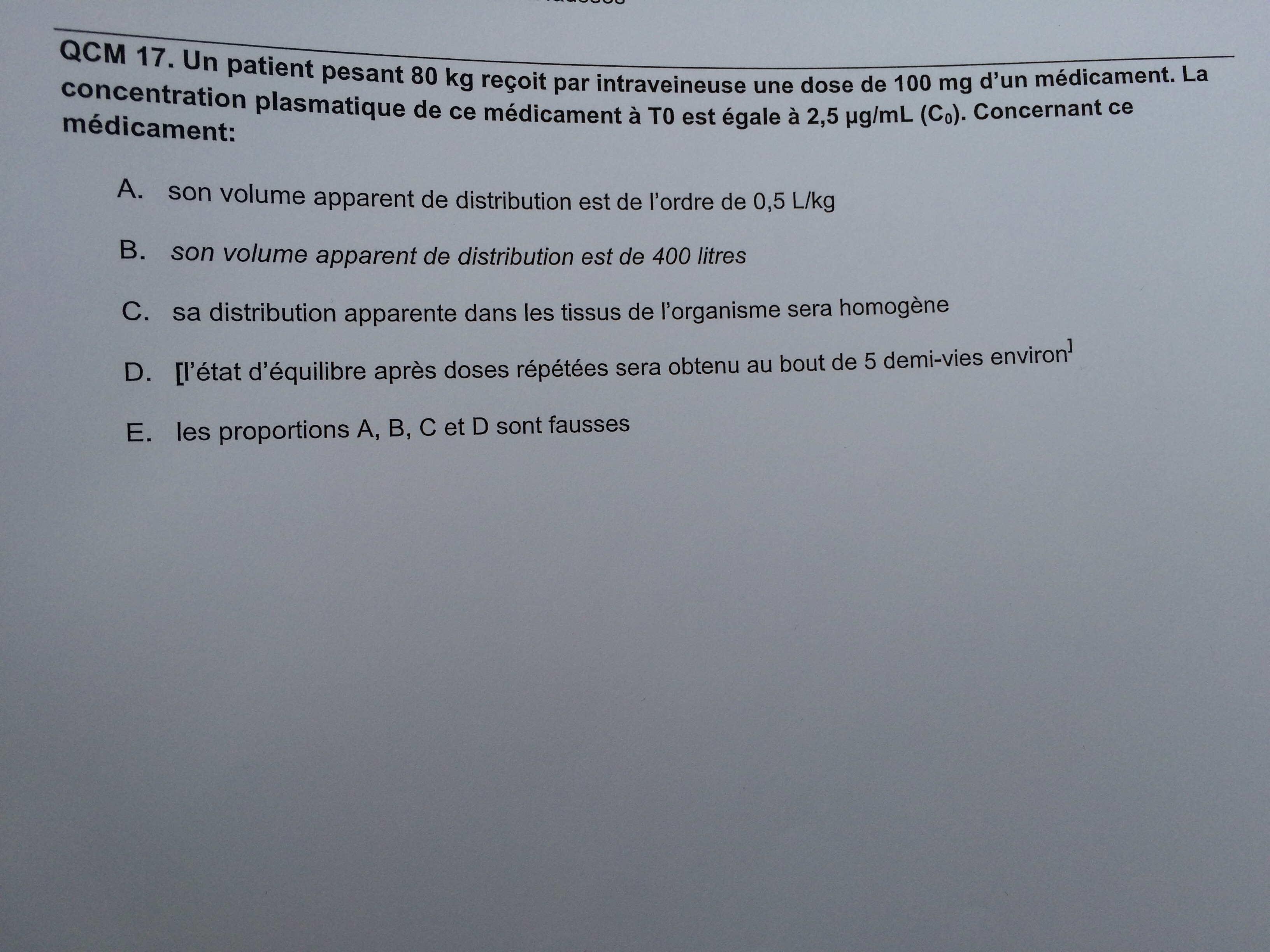 Si tu mets C0 en mg ça fait : Vd = 100 / 2,5.10^-3 = 40 000 mL