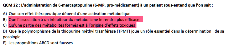 Le 6 mercaptopurine est métabolisé en forme inactive ou toxique , donc :