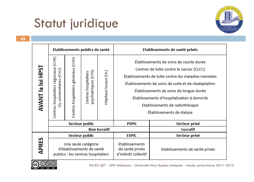 Peut être que j'ai mal compris mais à partir de ce tableau je vois que le secteur privé lucratif est devenu "établissement de santé privé" après la loi HPST. Donc ce que je comprend c'est le secteur lucratif a été supprimé.