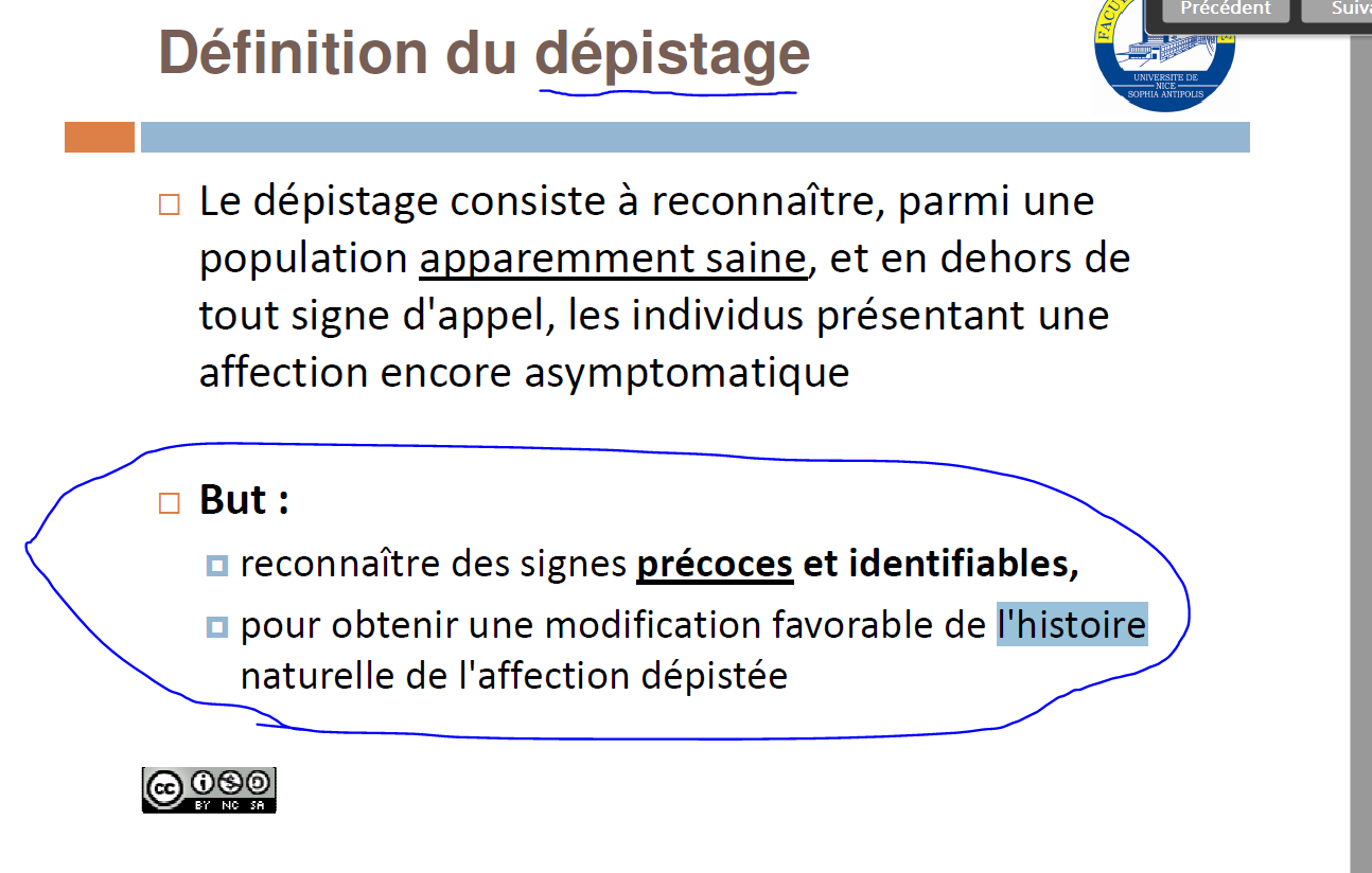 B. A pour but d'obtenir une modif favorable de l'histoire naturelle de la maladie dépistée"