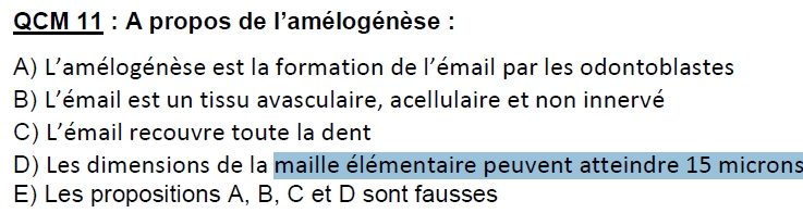 Je crois qu'il y a un petit soucis de correction concernant ce qcm.. C'est noté D, mais je pense que la maille à une taille inférieur à 1 nanomètre. Du coup, 1 micron = 10^-6 , est + grand, donc pas possible ...?