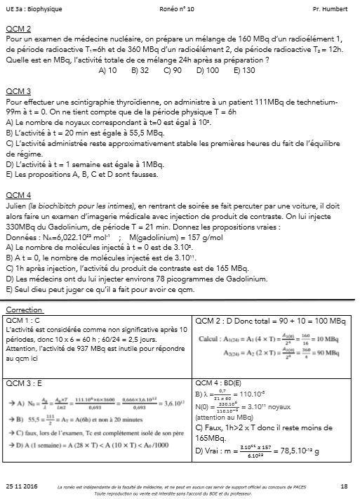 Salut, je ne retrouve plus ma roneo de Humbert et je voulais faire les exercices à la fin, celle avec les nouvelle formules pour calculer la masse, le nombre de molécule après l'injection ect.. Est ce que vous pouvez me l'envoyer en photo meme si la qualité est pourrie c'est pas grave?