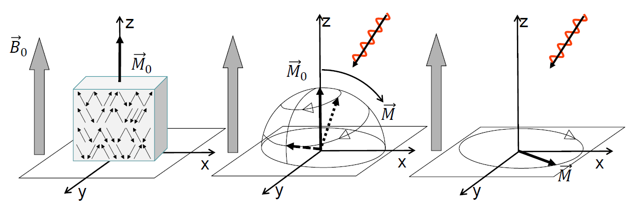 --> Je ne comprends pas bien la différence entre le champ magnétique B1 et le fait d'envoyer une onde électromagnétique pour faire précesser le moment magnétique