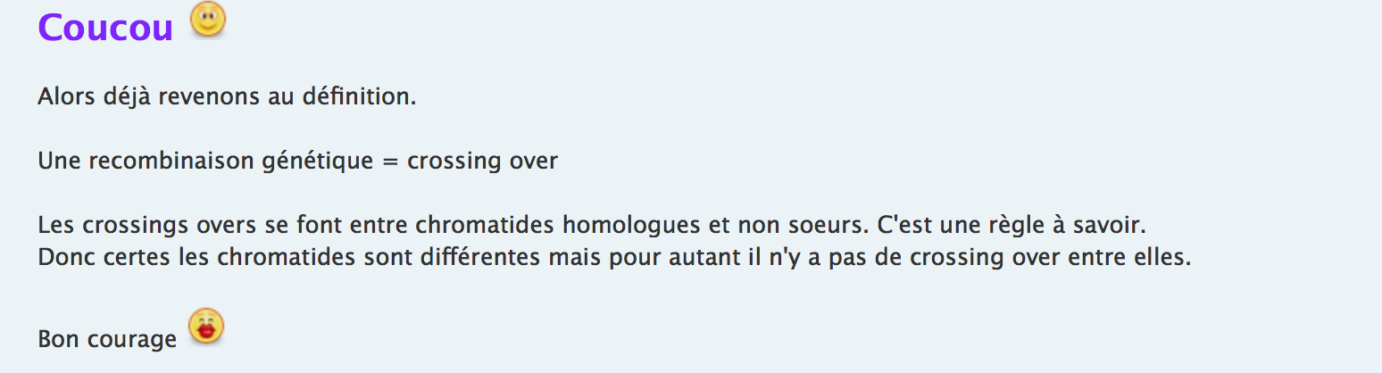 J'ai juste une petite question toute simple : est ce qu'on doit considerer que chromatide homologue = chromatide soeur ?