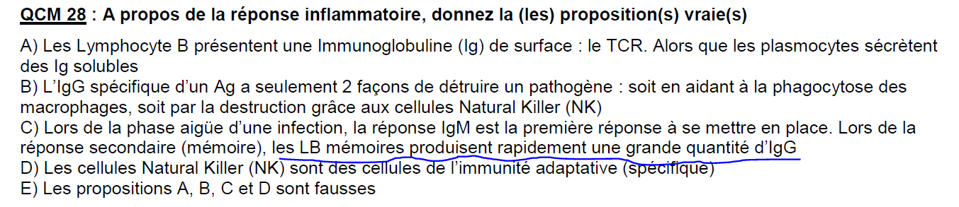 Je ne comprends pas pourquoi il est compté juste car j'avais cru comprendre que les plasmocytes sécrétaient les Ig et pas les LB mémoires ! Du coup je ne vois pas où est la subtilité