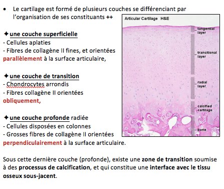 Pour moi je l'ai compté faux car dans le cours on nous parle de "couche profonde radiée", bon ca à la limite ca m'a juste preté à confusion mais on nous disait également dans le cours que les fibres de collagène étaient grosses sur cette couche, mais sur l'item il n'y avait aucune indication sur la taille des fibres donc pour moi c'est forcément qu'elles sont "normales", ni grosses, ni plates donc sur la couche qui est oblique à la surface articulaire.