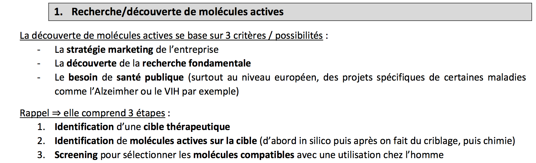 La A est compté Vrai pourtant dans mon cours j'ai 3 étapes dans la recherche de molécules actives :