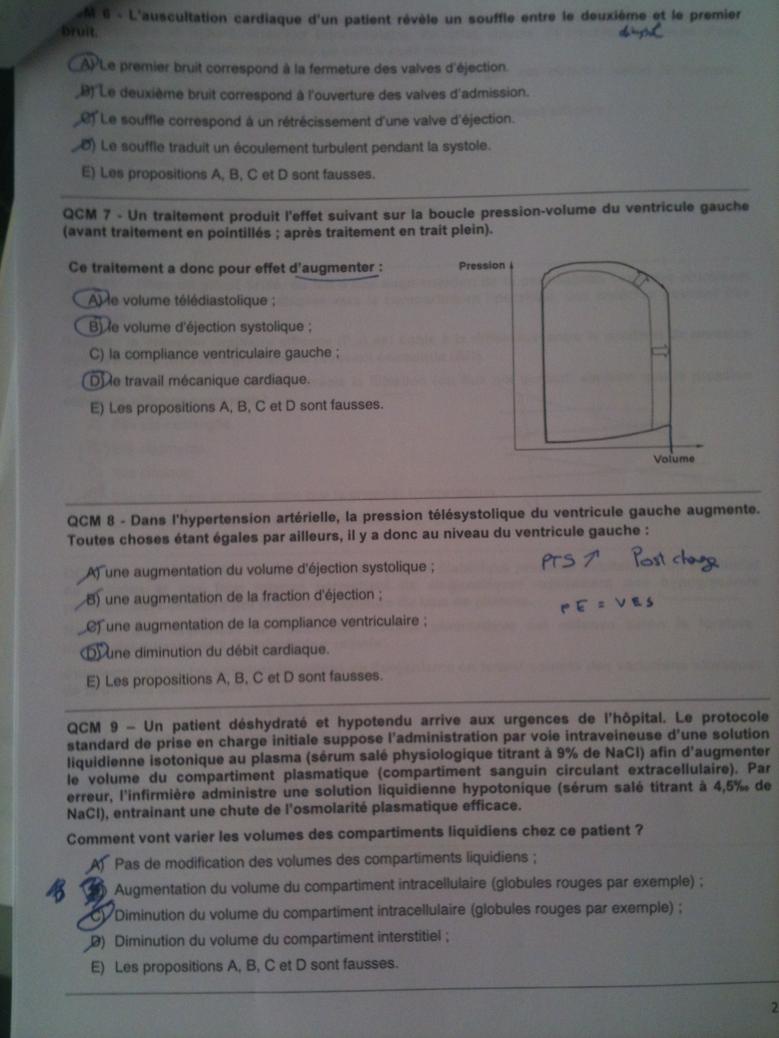 6E : on est en diastole, le B1 est la fermeture des valves d'admission, le B2 est la fermeture des valves d'éjection, le souffle correspondant à un rétrécissement d'une valve d'éjection serait entre B1 et B2 (pendant la systole)
